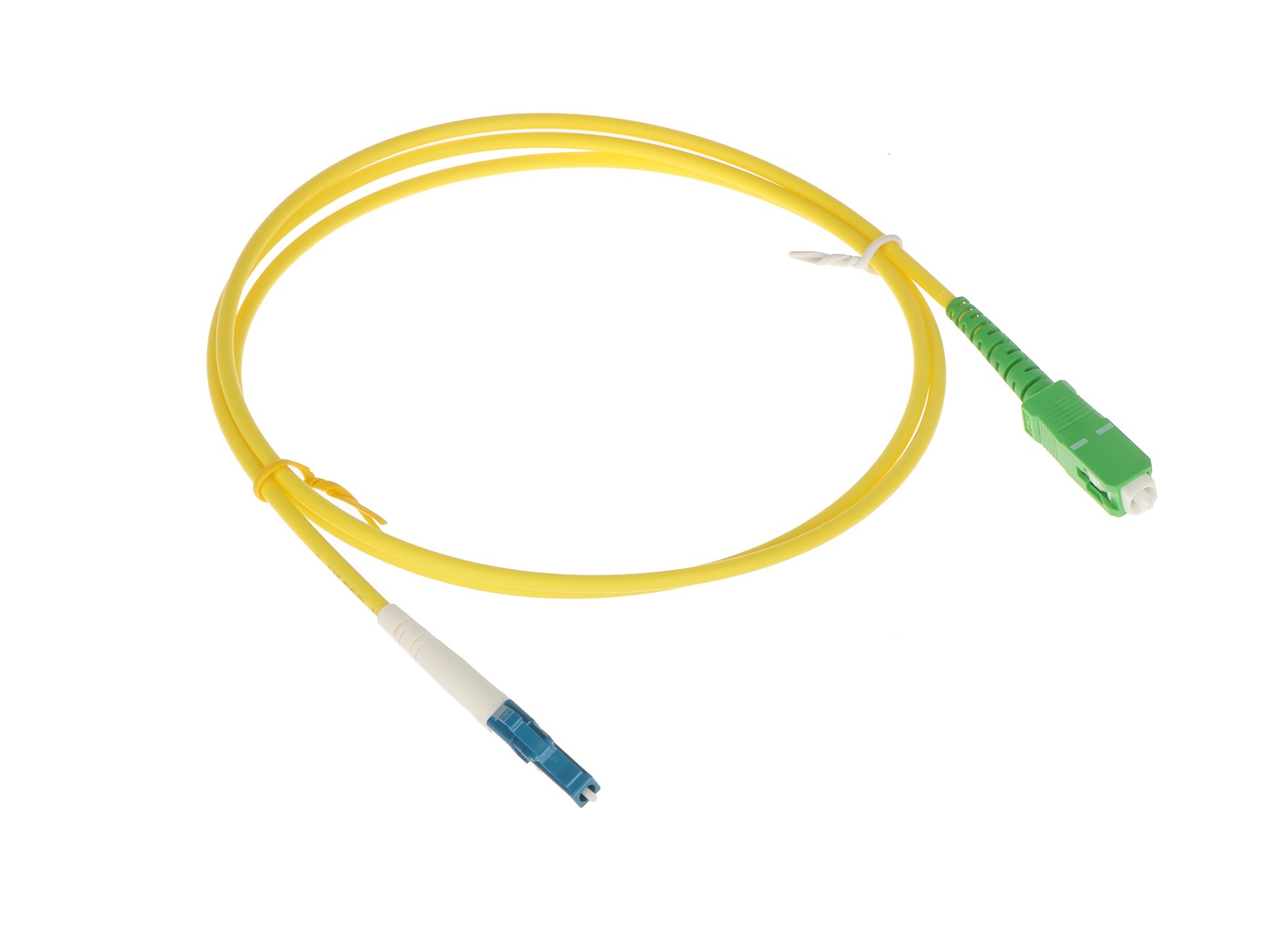 Patchord światłowodowy o długości 5 metrów i średnicy 3 mm, produkowany z jednomodowego, simplexowego kabla światłowodowego zakończonego z jednej strony złączem LC/UPC, a z drugiej SC/APC. Klasa SILVER z włóknem G.657A2 zapewnia bardzo dobre cechy transmicyjne i właściwości optyczne (tłumienność wtrąceniowa złącza IL w granicy 0.3-0.4 dB), a minimalny promień gięcia to 15 mm. Powłoka kabla wykonana została z tworzywa bezhalogenowego LSZH (Low Smoke Zero Halogen), nie wydzielającego szkodliwych gazów podczas pożaru. W przypadku patchordów nie ma konieczności spawania włókien co znacznie zmniejszy czas prac montażowych