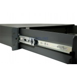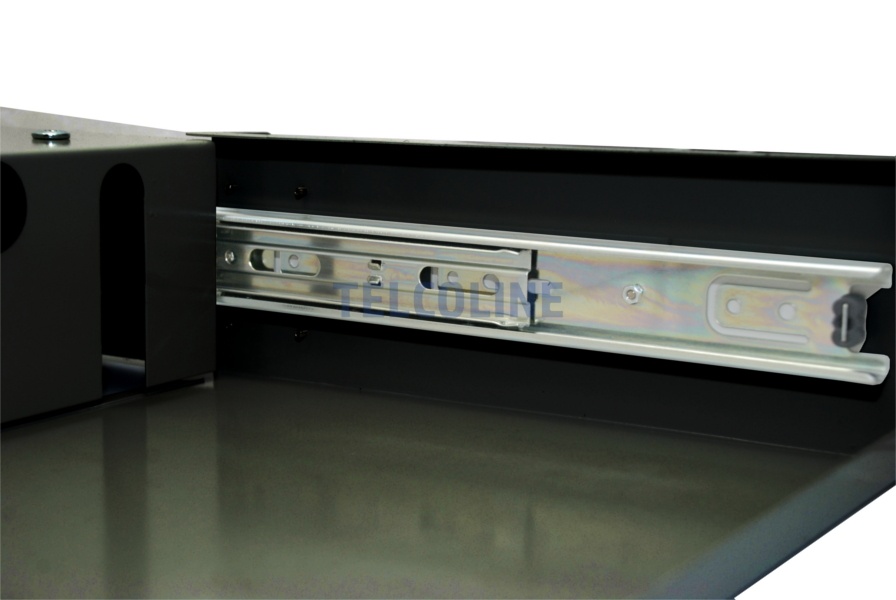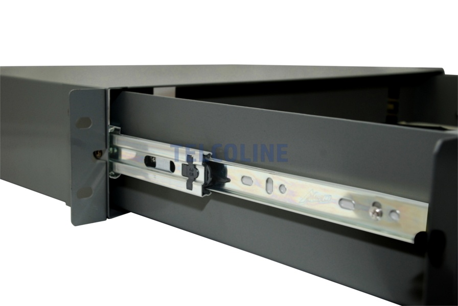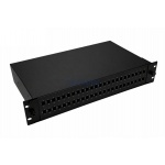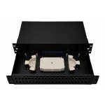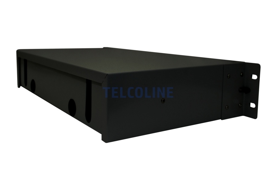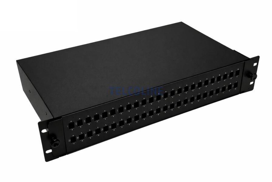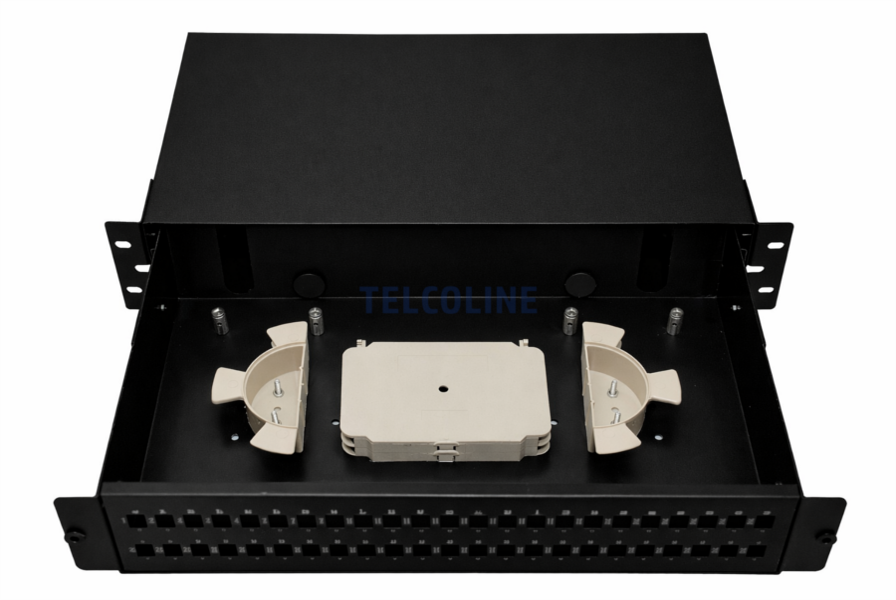 Przełącznica rackowa przeznaczona jest do montażu w 19 - calowych szafach teleinformatycznych (stojące, wiszące). Przełącznica umożliwia zainstalowanie 48 adapterów typu SC Simplex lub LC Duplex. Wyposażona w organizer przewodów oraz tackę światłowodową. Na tylnej ściance znajdują się 2 otwory zaślepione gumowymi uszczelkami i 2 otwory na dławiki kablowe PG13.5 (z regulacją wysokości), przeznaczonych na wprowadzenie i wyprowadzenie przewodów światłowodowych. Przełącznica wyposażona jest w szufladę zamontowaną na prowadnicach kulkowych, które umożliwiają swobodny dostęp do wnętrza lub wypięcia z obudowy. Dzięki zastosowaniu trzpieni blokujących możemy zablokować wysuw szuflady.